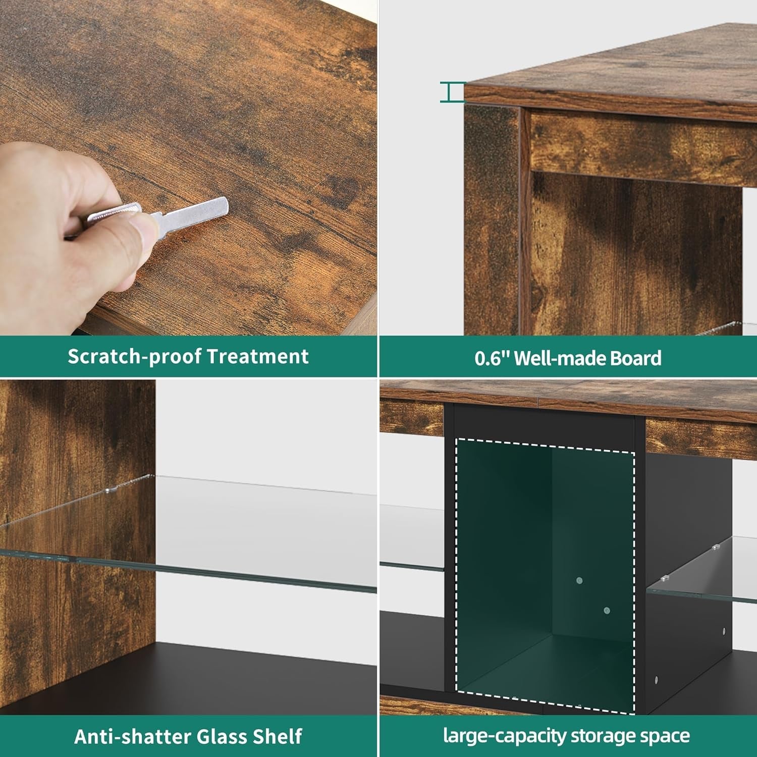 - Chic Design: Combining retro flame grain aesthetics with modern lighting, this TV stand complements any home decor and enhances the overall style of your living space.